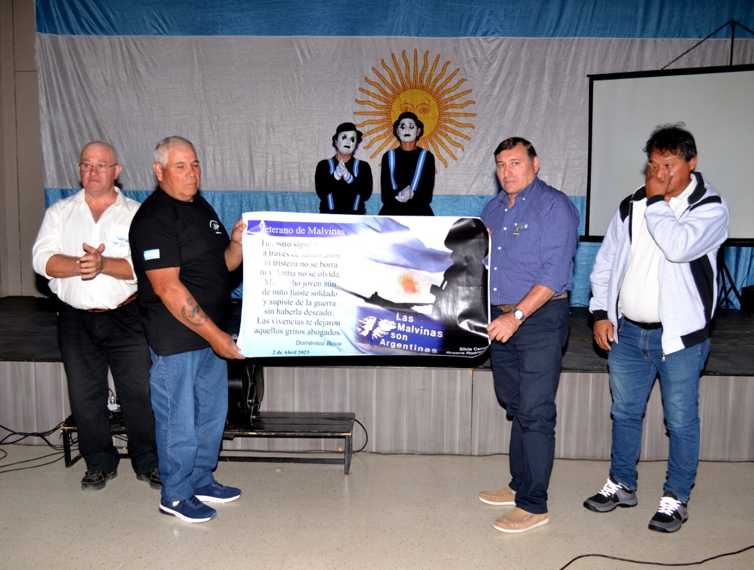 En dicho homenaje a los héroes de Malvina, el cual se vivió con gran emoción en la Plaza Rim R. Rosales, que contó con la presencia del ex veterano de guerra local Roberto Rojas y su compañero Sergio Peralta.