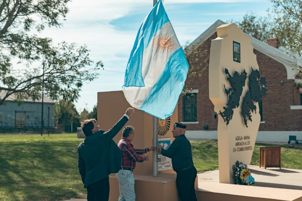 En los albores de la mañana, se realizó el izamiento de la enseña patria a cargo del Intendente Jorge Marino, junto a los combatientes Jorge Antonio Garro y Juan Carlos Olivero. En el acto, se entonaron las estrofas del Himno Nacional Argentino, ejecutado por la Banda Militar “Juan Luis Beltrán”.