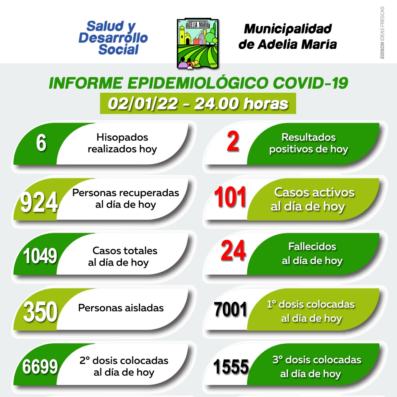 La Municipalidad de Adelia María informó que en la jornada de ayer se han detectado dos nuevos casos positivos para Covid-19.