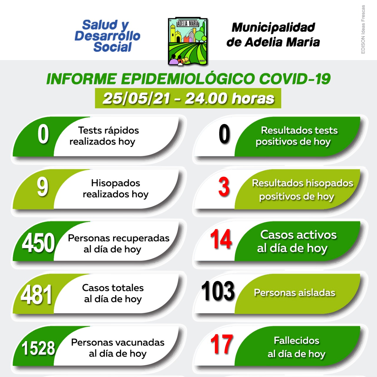 Adelia María tiene 14 casos activos de coronavirus