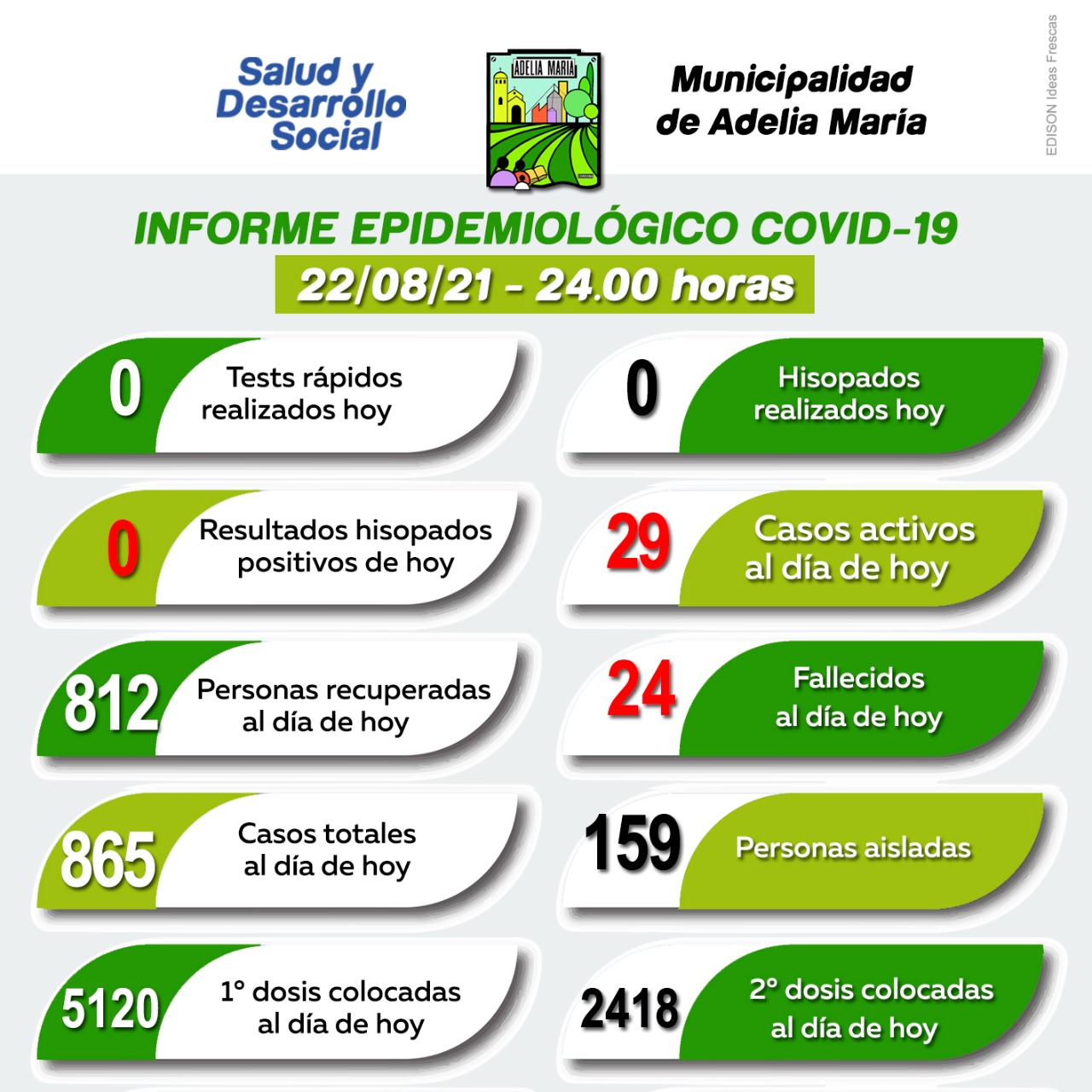 La Municipalidad de Adelia María informó que son 29 los casos activos en la localidad.
