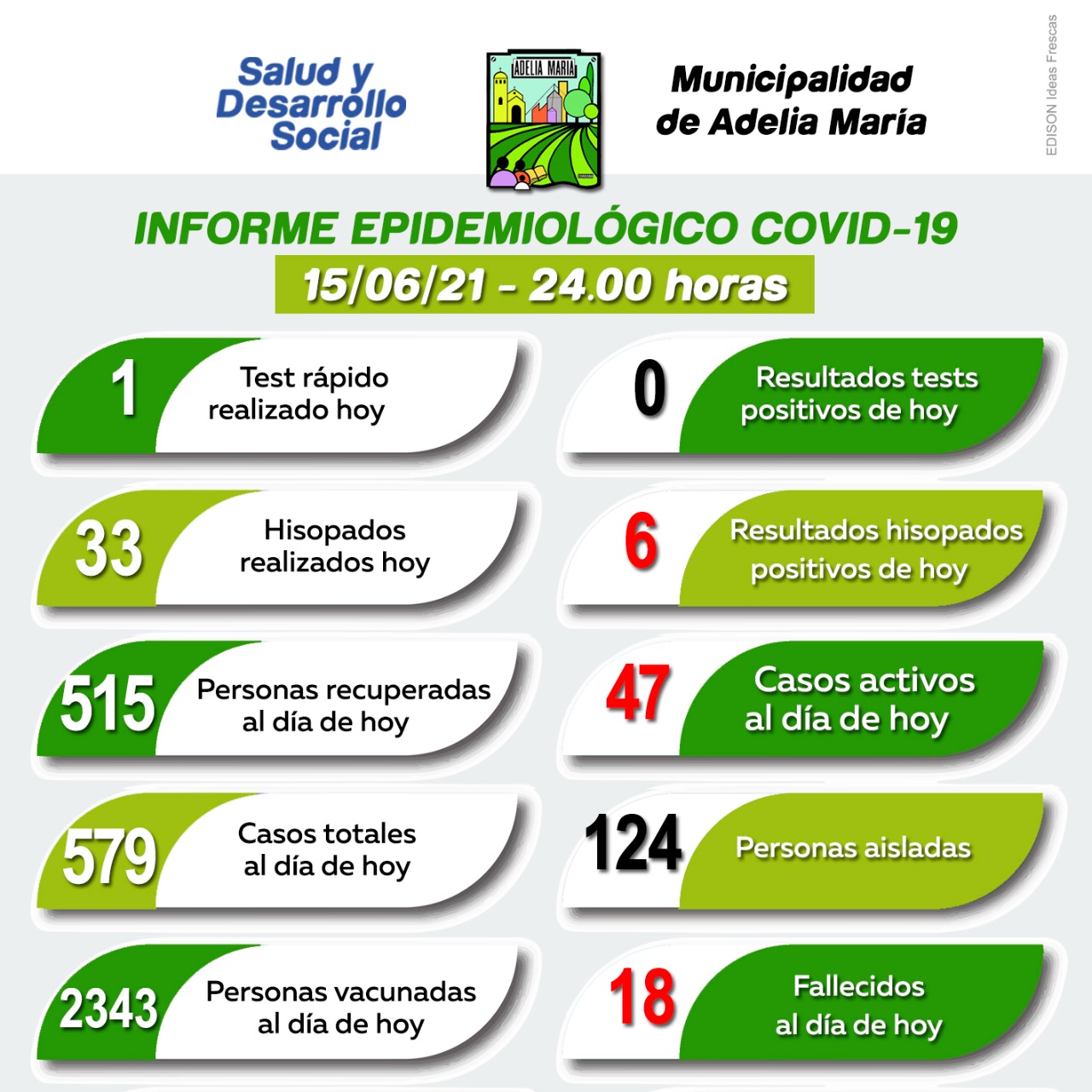 La Municipalidad de Adelia María informó que en la jornada de ayer se detectaron seis nuevos casos positivos deCovid-19. Además, se han recuperado nueve pacientes que cursaban la enfermedad.