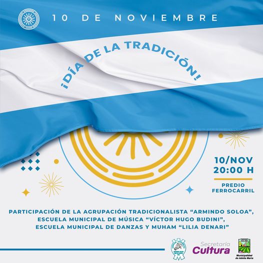 El miércoles 10 de noviembre, la Municipalidad de Adelia María invita a los vecinos a sumarse al evento por el Día de la Tradición, para que conozcan nuestras tradiciones, costumbres y raíces.