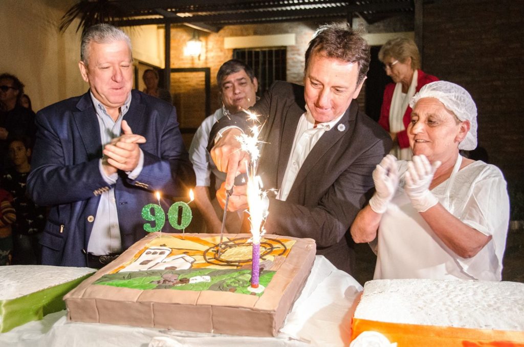 Seguidamente, con emoción se realizó el desfile cívico militar de las instituciones locales que participaron con banderas, estandartes, delegaciones y vehículos. Para finalizar los festejos, se compartió la torta de cumpleaños decorada con el diseño del Mural de los 90 años.