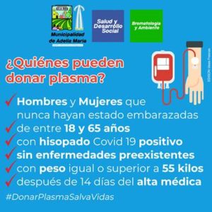 Adelia María: Donación de plasma de pacientes recuperados de Covid-19