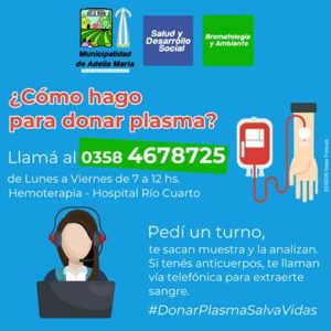 Adelia María: Donación de plasma de pacientes recuperados de Covid-19