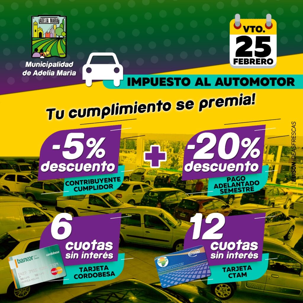 Estar al día con las tasas municipales tiene sus beneficios. La Municipalidad de Adelia María premia con 5% de descuento al Contribuyente Cumplidor, al que se le suma 20% de descuento por pago adelantado del semestre.