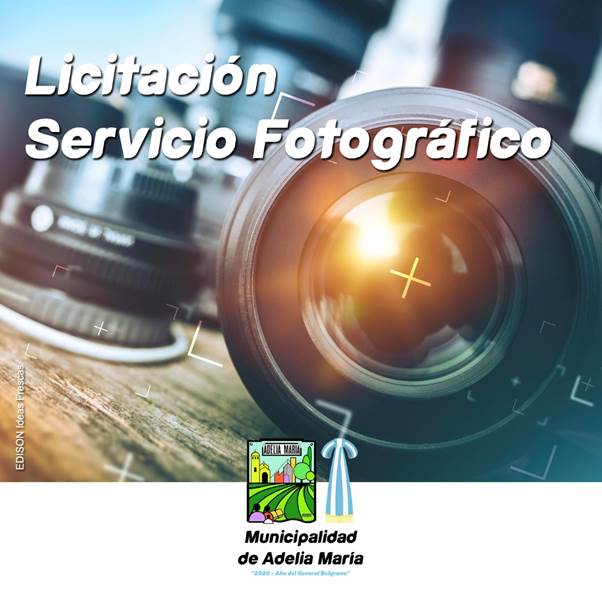 La Municipalidad de Adelia María convoca a licitación municipal a fotógrafos locales con equipo profesional, para la prestación de su servicio durante un período de seis meses en el área municipal de Prensa, renovable por igual plazo, según resultado de nuevos procesos periódicos de licitación.