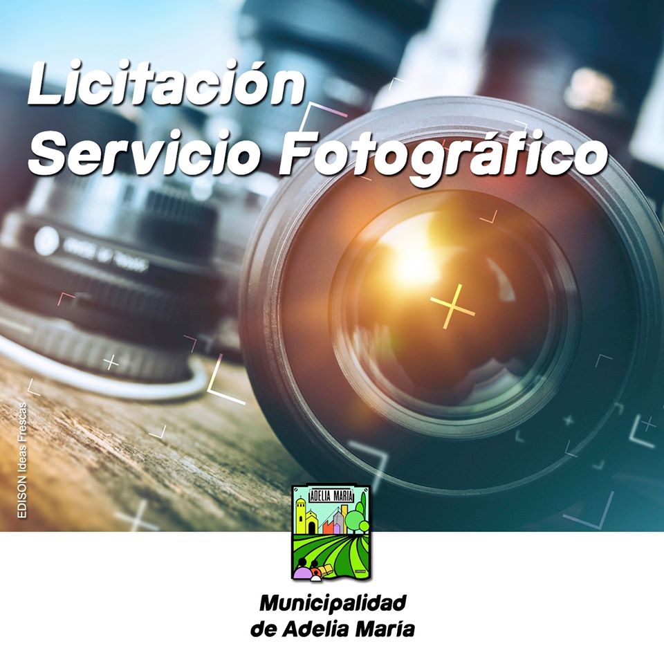La Municipalidad de Adelia María convoca a licitación municipal a fotógrafos locales con equipo profesional, para la prestación de su servicio durante un período de seis meses en el área municipal de Prensa, renovable por igual plazo, según resultado de nuevos procesos periódicos de licitación.