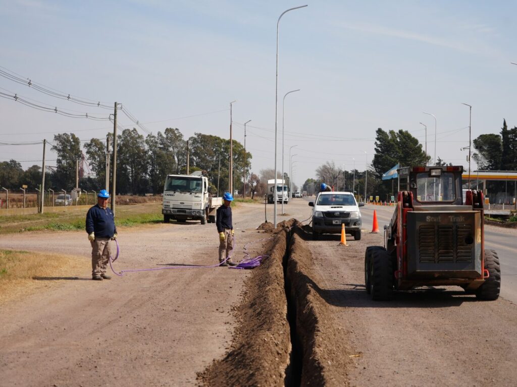 Colocación de cable subterráneo en columnas de luminarias LED en Ruta Provincial N° 24, entre Av. San Martín e IPEA N° 292 «Agr. Liliam Priotto».