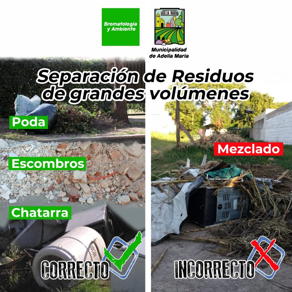 El Área de Ambiente de la Municipalidad de Adelia María recuerda la importancia de la Separación de Residuos que se promueve en la localidad.