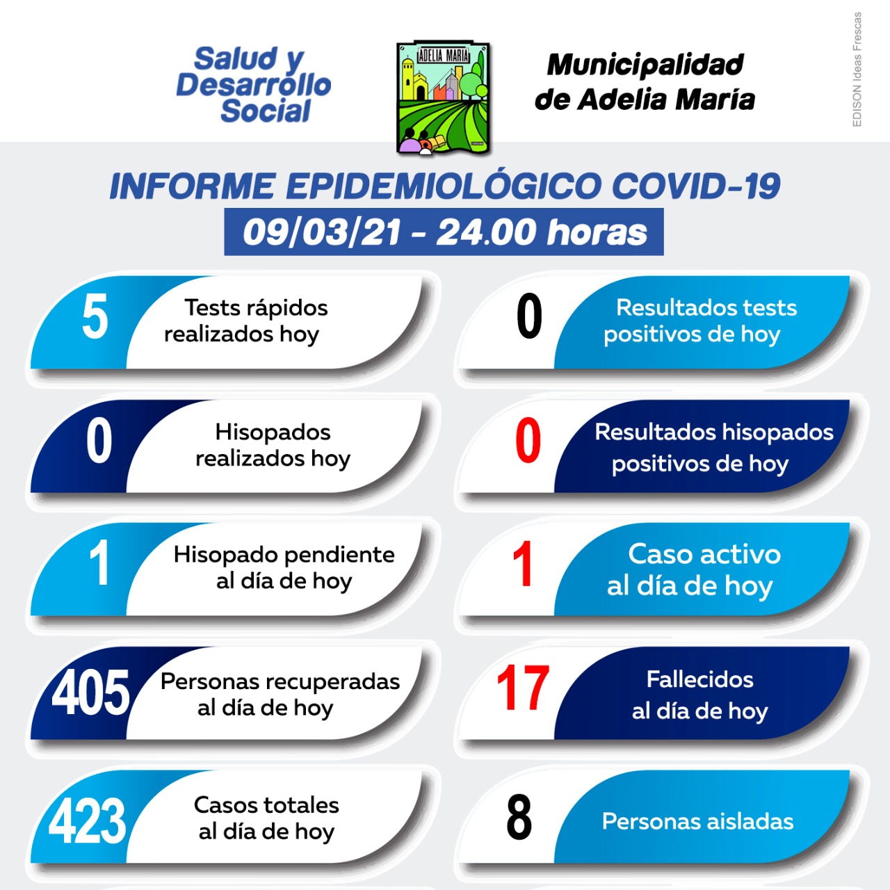 La Municipalidad de Adelia María informó que en estos momentos hay un solo caso activo de coronavirus en la localidad.