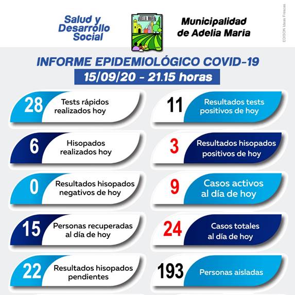 Adelia María sumó 3 nuevos casos positivos de coronavirus en la jornada de ayer. Así lo reportó el municipio el informe emitido a las 21:15.