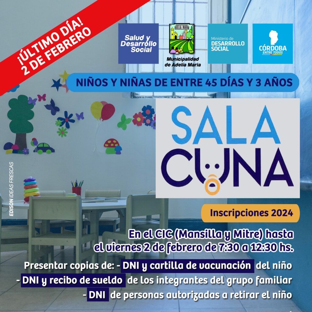 Adelia María: ¡ÚLTIMO DÍA PARA INSCRIPCIONES A SALA CUNA 2024!