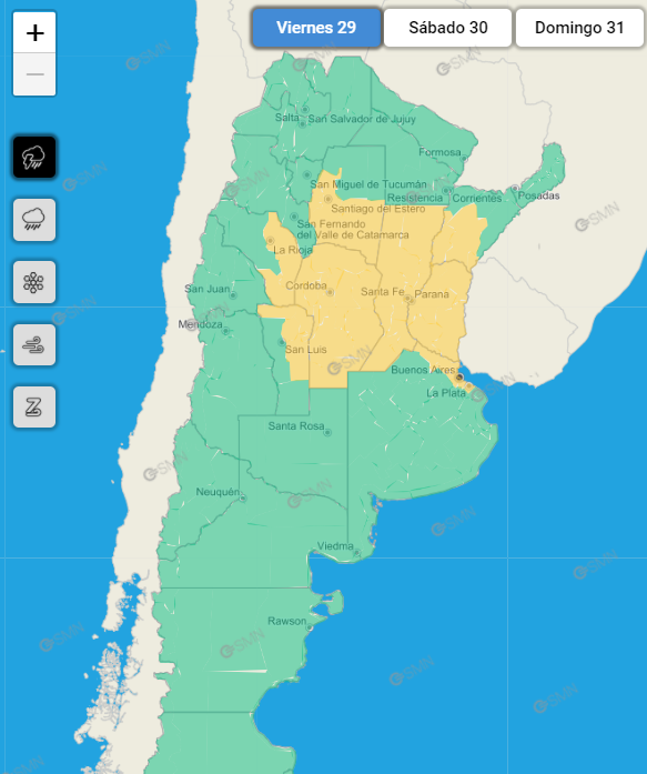 Además de Córdoba, el alerta también alcanza a otras provincias del este y norte del país.