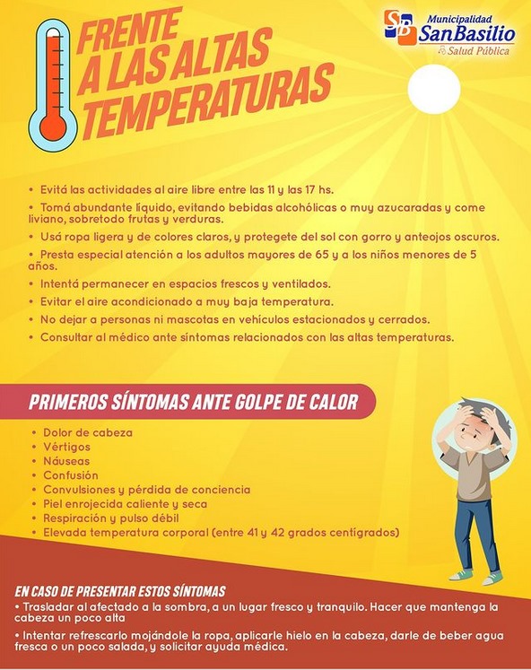 Desde la Dirección de Salud de la Municipalidad de San Basilio se publicó algunas recomendaciones a tener en cuenta con las altas temperaturas que se vienen presentando estos días de Noviembre.