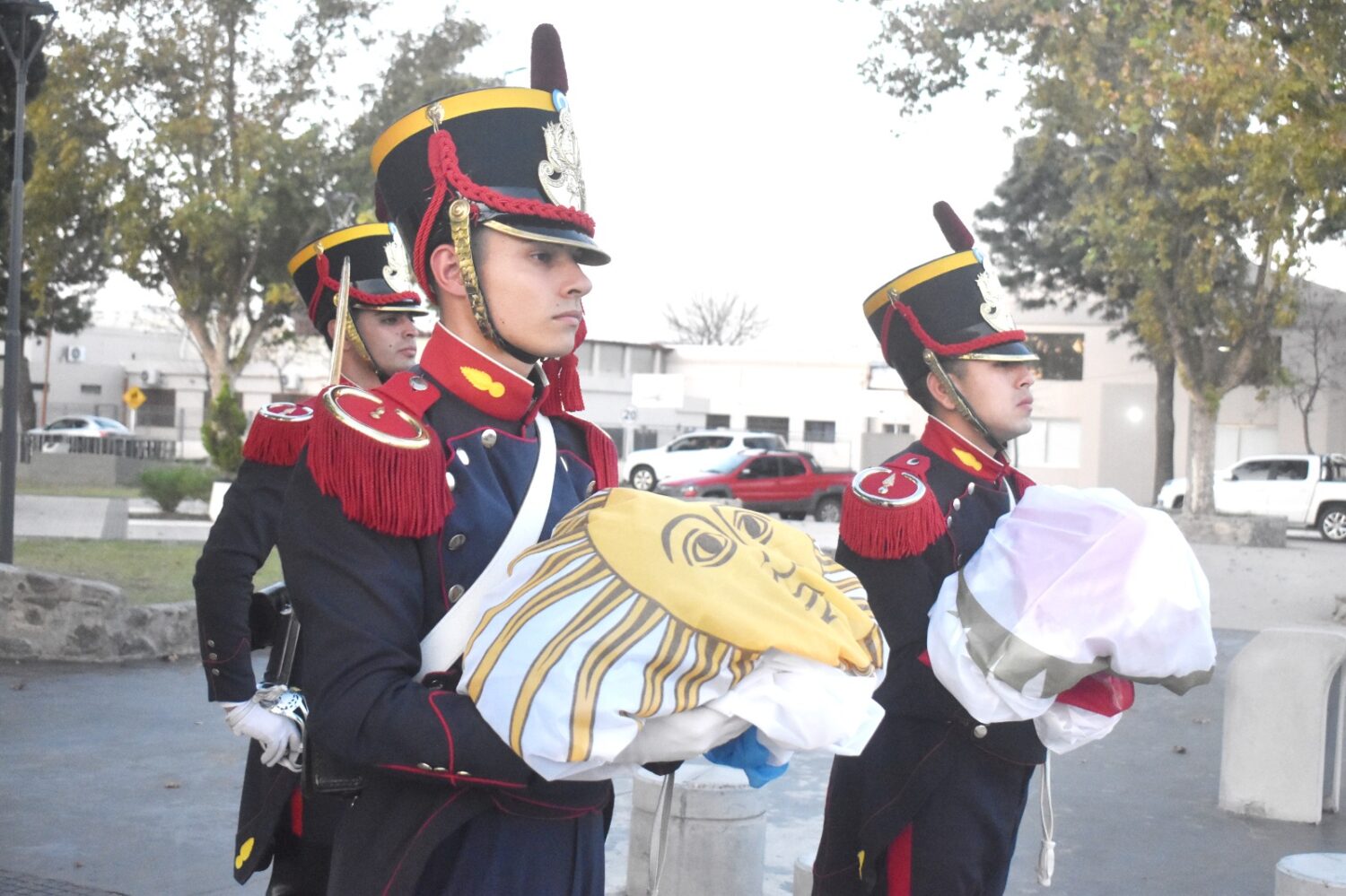 Esta tarde, una delegación del Regimiento Granaderos a Caballo General San Martín visitó Vicuña Mackenna y participó en el acto de arriar la Bandera Nacional en la Plaza Domingo Faustino Sarmiento.