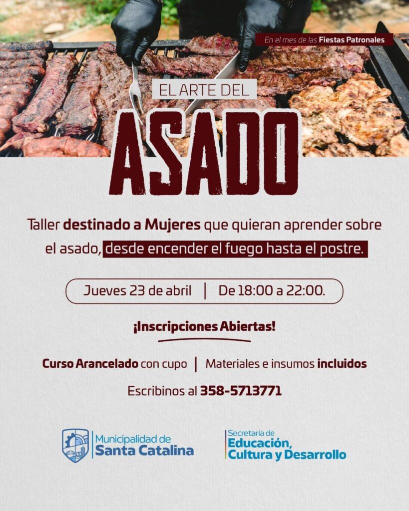 Taller destinado a Mujeres que quieran aprender sobre el asado, desde encender el fuego hasta el postre.