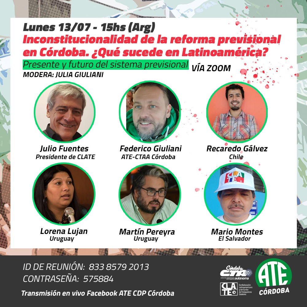 ATE Córdoba organiza una charla debate denominada «Inconstitucionalidad de la reforma previsional en Córdoba. ¿Qué sucede en Latinoamérica? Presente y futuro del sistema previsional».