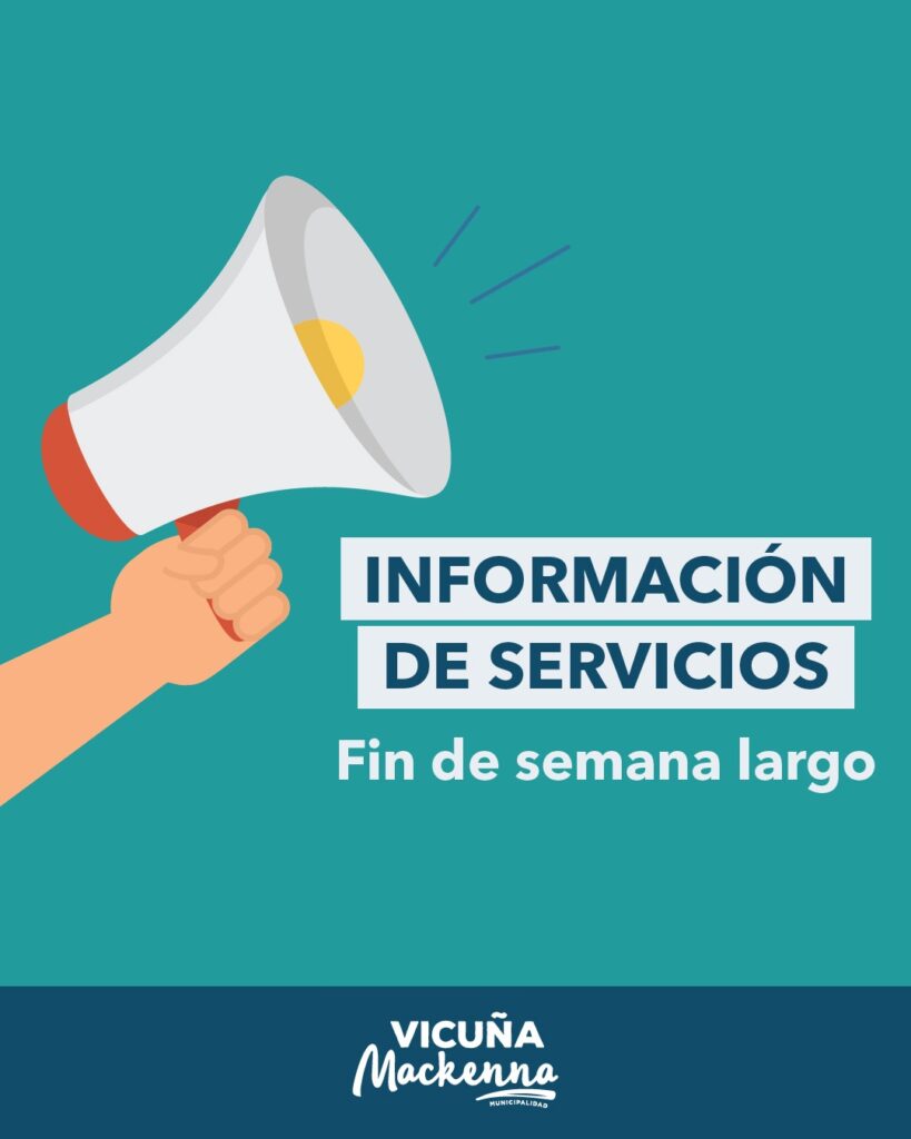 La Municipalidad de Vicuña Mackenna informó cuáles serán los servicios habilitados este fin de semana largo.