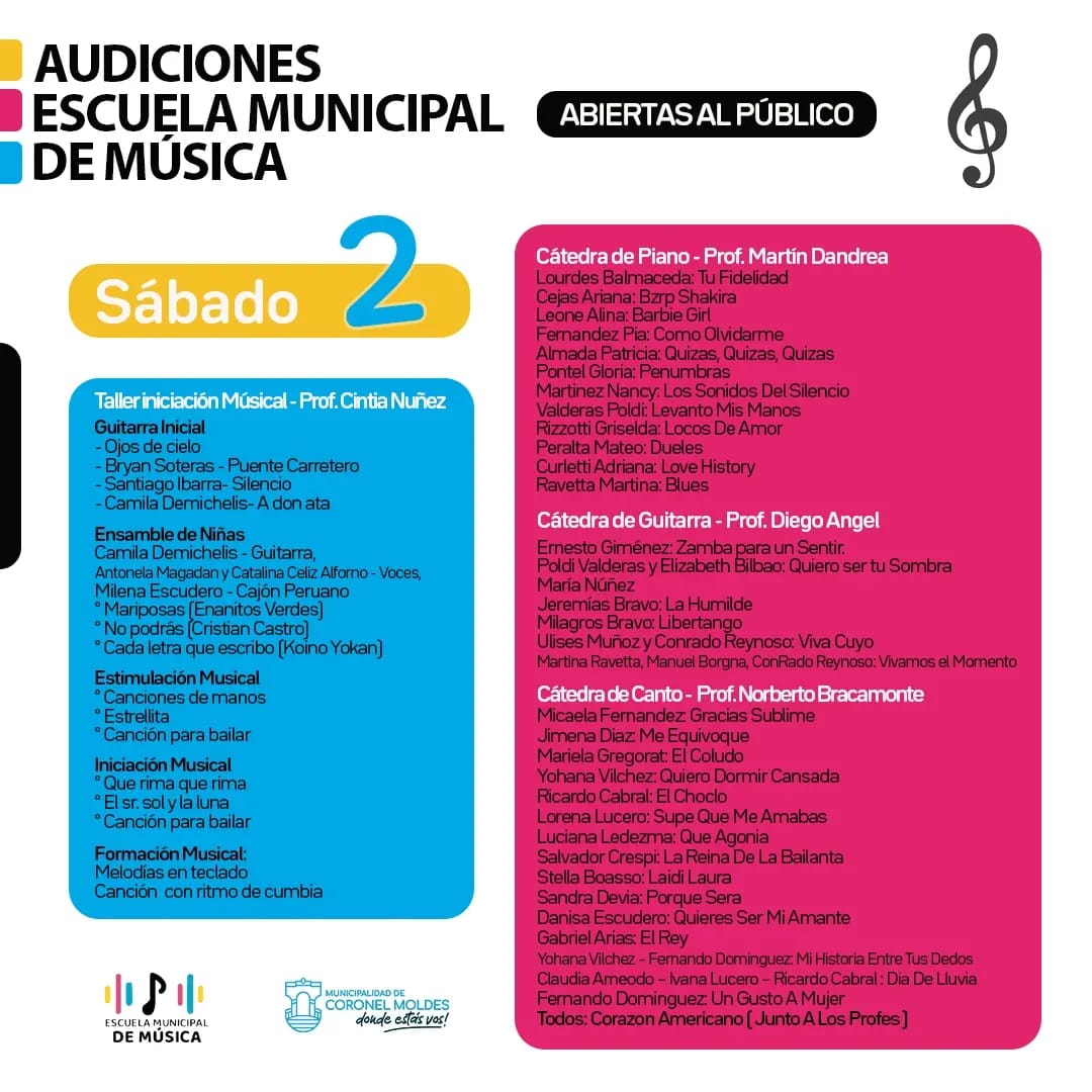Este fin de semana, la Casa de la Historia y la Cultura «Agustín Tosco» de Coronel Moldes, será el escenario de las Audiciones de Fin de año de la Escuela Municipal de Música.