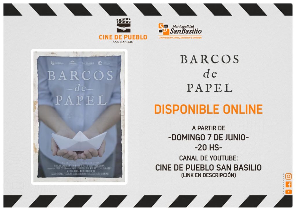 La Secretaría de Cultura, Educación e Inclusión y su taller Cine de Pueblo informaron que el cortometraje Barcos de Papel estará disponible de manera online a partir del domingo 7 de junio a las 20. Será en la plataforma Youtube.