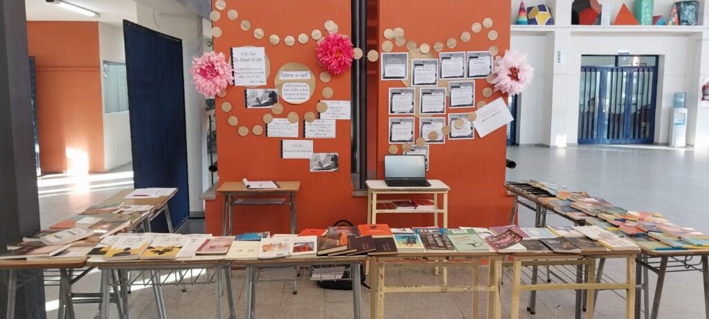 Bajo el lema «Redescubrimiento de la biblioteca», se trasladó al hall del instituto, un lugar común y transitado por todos, con el objetivo de fomentar la lectura por placer y la conexión entre las personas y los libros.