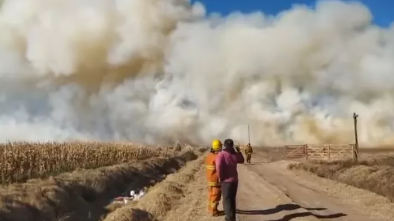 Un intenso trabajo tuvieron este miércoles bomberos voluntarios de Huanchilla, General Levalle y Adelia María, al ser convocados para sofocar un incendio rural de magnitud declarado en esa jurisdicción.