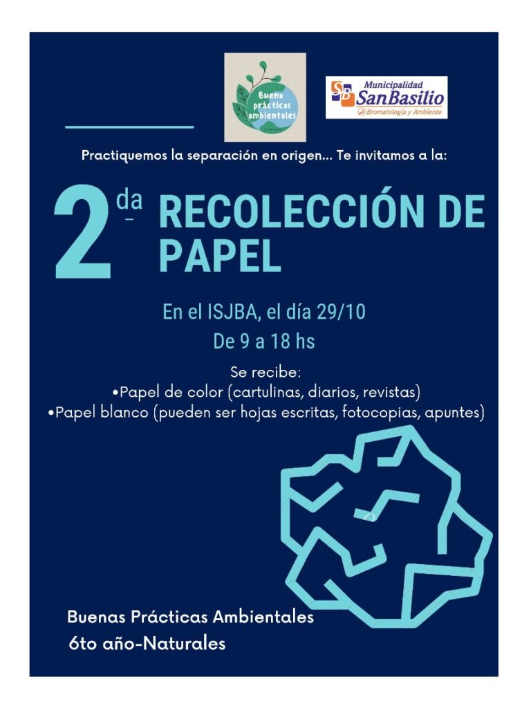 El próximo viernes 29, continuando con las Buenas Prácticas Ambientales, se realizará la segunda campaña de Recolección de Papel.