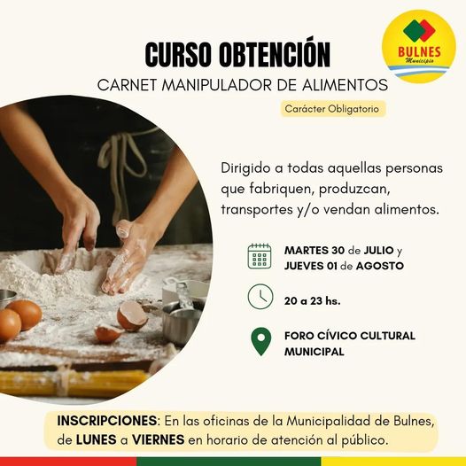 Es de CARÁCTER OBLIGATORIO para todas aquellas personas que fabriquen, produzcan, transporten y/o vendan alimentos en Bulnes.