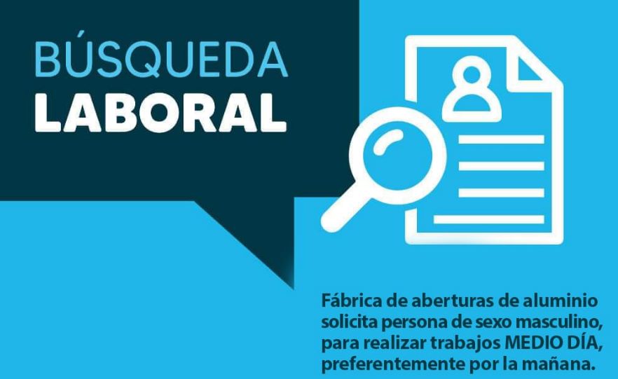 La Oficina de Empleos de Coronel Moldes publicó una búsqueda laboral para persona de sexo masculino a cubrir puesto es una fábrica de aberturas de aluminio.