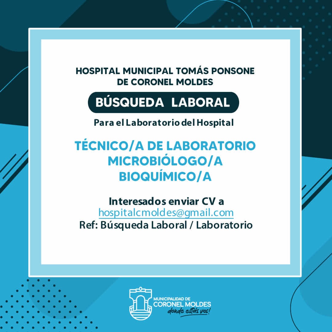 El Hospital Municipal Tomás Ponsone de Coronel Moldes está en la búsqueda de personal capacitado para el Laboratorio.