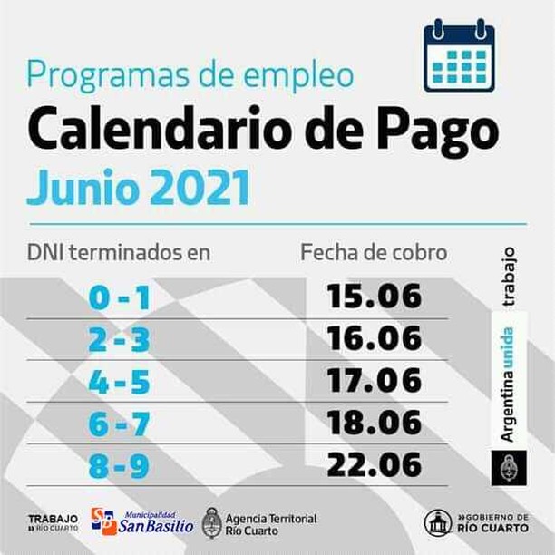 La Municipalidad de San Basilio informó a los vecinos de la localidad el calendario de pagos.