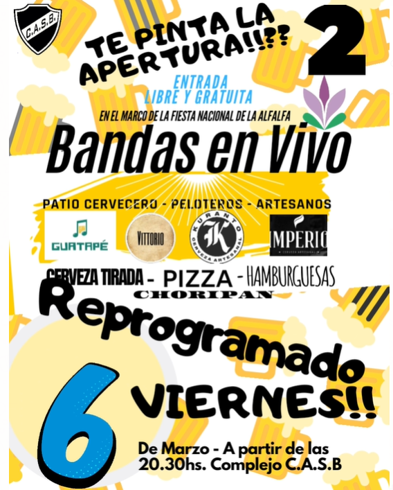 Una nueva edición de Te Pinta la Apertura se va a desarrollar en San Basilio. Será en el marco de la Fiesta Nacional de la Alfalfa.