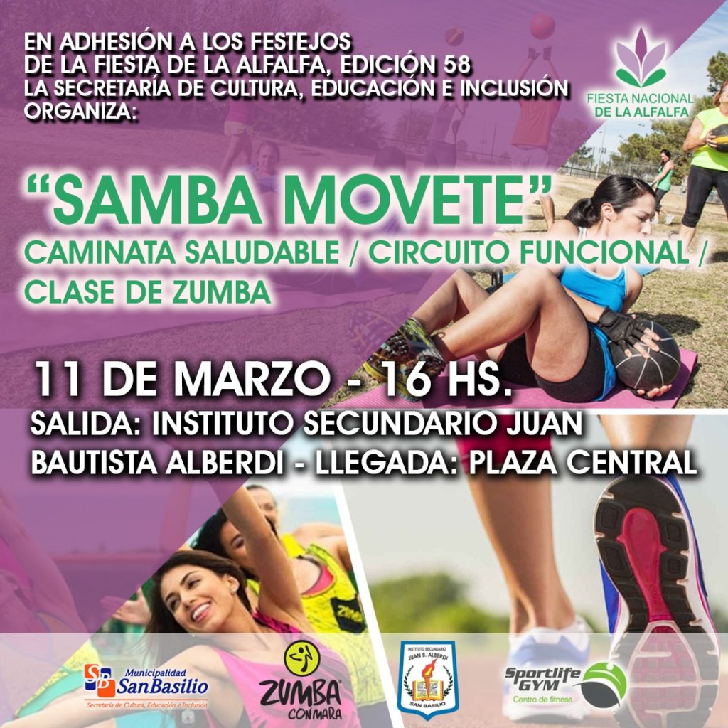 En el marco de la Fiesta Nacional de la Alfalfa se organiza el Samba Movete. Una propuesta saludable y para toda la familia.