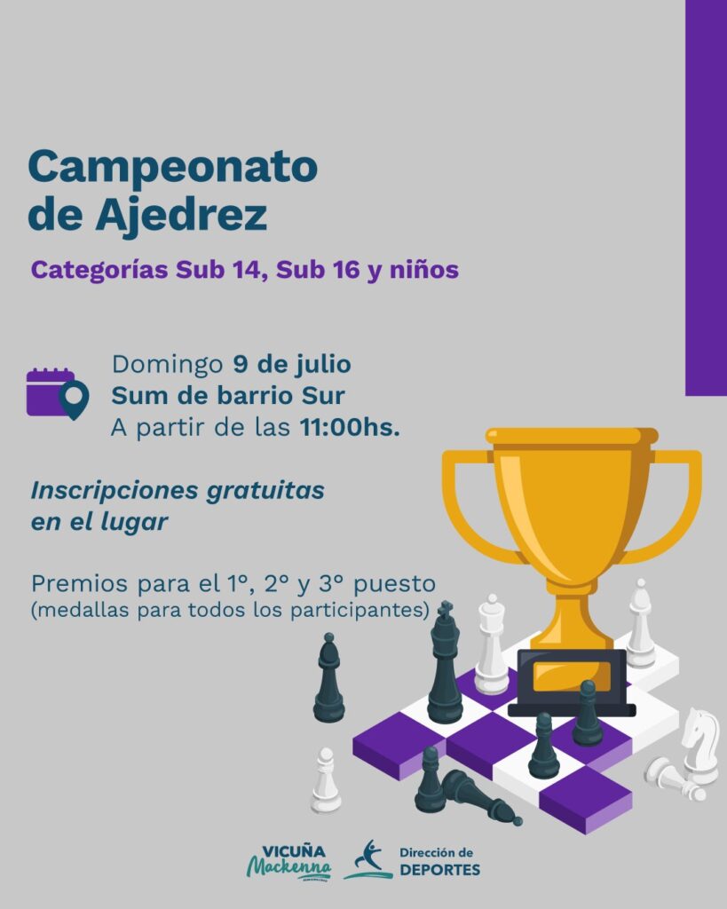 El próximo Domingo 9 de Julio se realizará el campeonato de ajedrez para las categorías Sub 14, Sub 16 y niños en el Sum de barrio Su de Vicuña Mackenna.