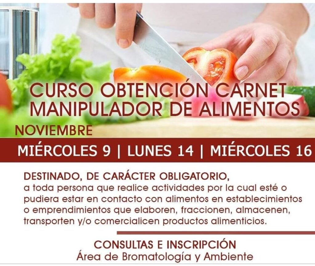 Se encuentran abiertas las Inscripciones para la obtención del Carnet de Manipulación de Alimentos.