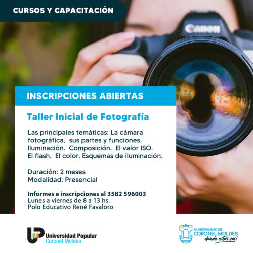7 junio, 2022En el marco de los Talleres organizados por la Universidad Popular de Coronel Moldes, se inician las inscripciones para el Taller inicial de Fotografía, en una nueva edición. Se abren […]