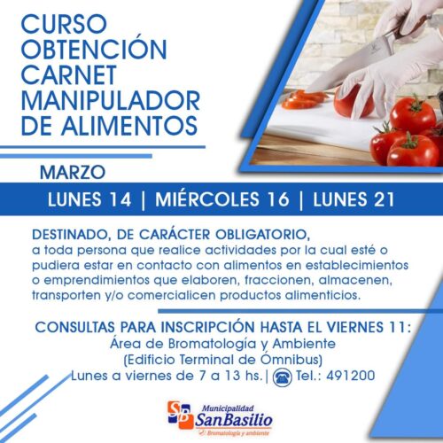 San Basilio: Curso para la obtención de carnet para manipular alimentos