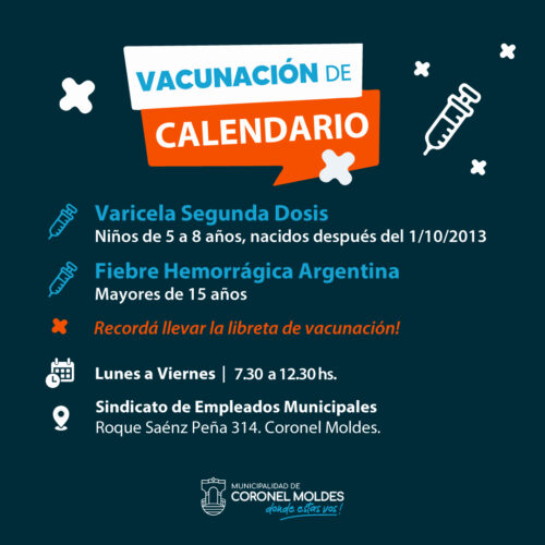 Leer MásCoronel Moldes: Vacunación contra la Varicela y la Fiebre Hemorrágica Argentina