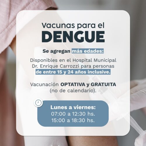 5 noviembre, 2025Se agregan más edades: Disponibles en el Hospital Municipal Dr. Enrique Carrozzi para personas de entre 15 y 24 años inclusive. ℹ️ Vacunación OPTATIVA y GRATUITA (no de calendario). Lunes […]