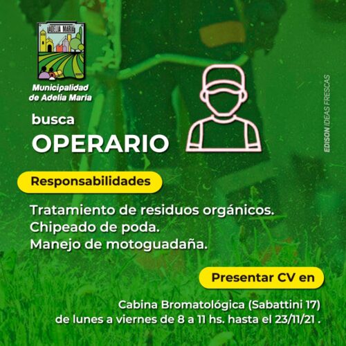 Leer MásOportunidad laboral: La Municipalidad de Adelia María selecciona operario