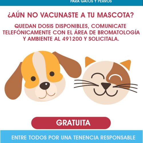 30 agosto, 2021Los interesados en vacunar a sus mascotas deben comunicarse con el Área de Bromatología y Ambiente.