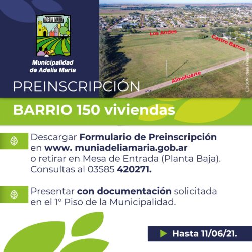 Leer MásExtendieron la preinscripción al Barrio 150 Viviendas en Adelia María