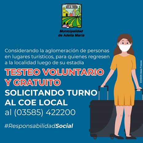 11 enero, 2021La Municipalidad recomienda que quienes retornen de sus vacaciones se hagan testeos.