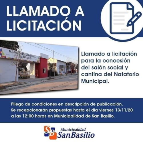 Llamado a licitación para la concesión del salón social y la cantina del Natatorio Municipal