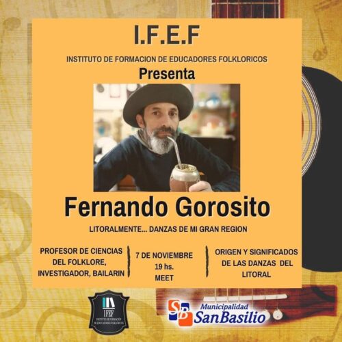 7 noviembre, 2020Es disertante es profesor de Danzas Folklóricas y Ciencias del Folklore y reconocido bailarín de la región litoraleña.