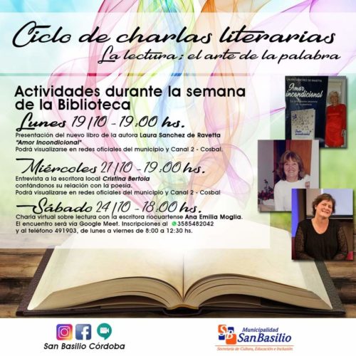 11 octubre, 2020Será en conmemoración del Día de la Biblioteca.