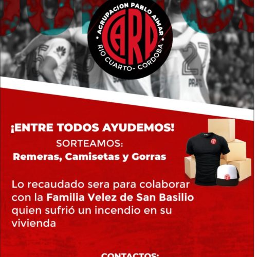 29 septiembre, 2020La rifa fue organizada por la Agrupación Pablo Aimar para ayudar a una familia de San Basilio a la que se le incendió la casa.