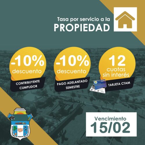 6 febrero, 2024La Municipalidad de Monte de los Gauchos te recuerda que este jueves 15 de febrero vence la Tasa por Servicio a la Propiedad. Podés pagarla accediendo a estos beneficios y […]